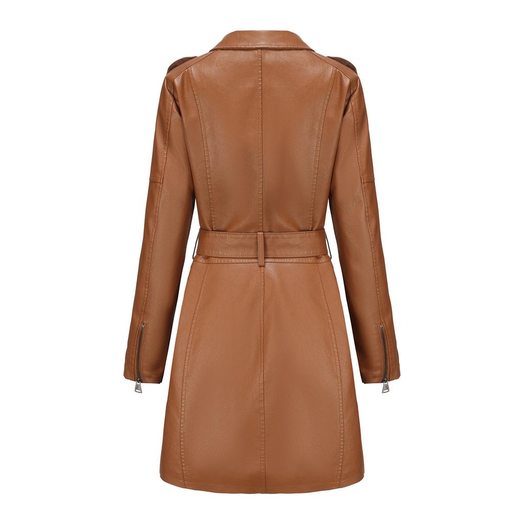 Женский однотонный плащ средней длины из искусственной кожи с поясом