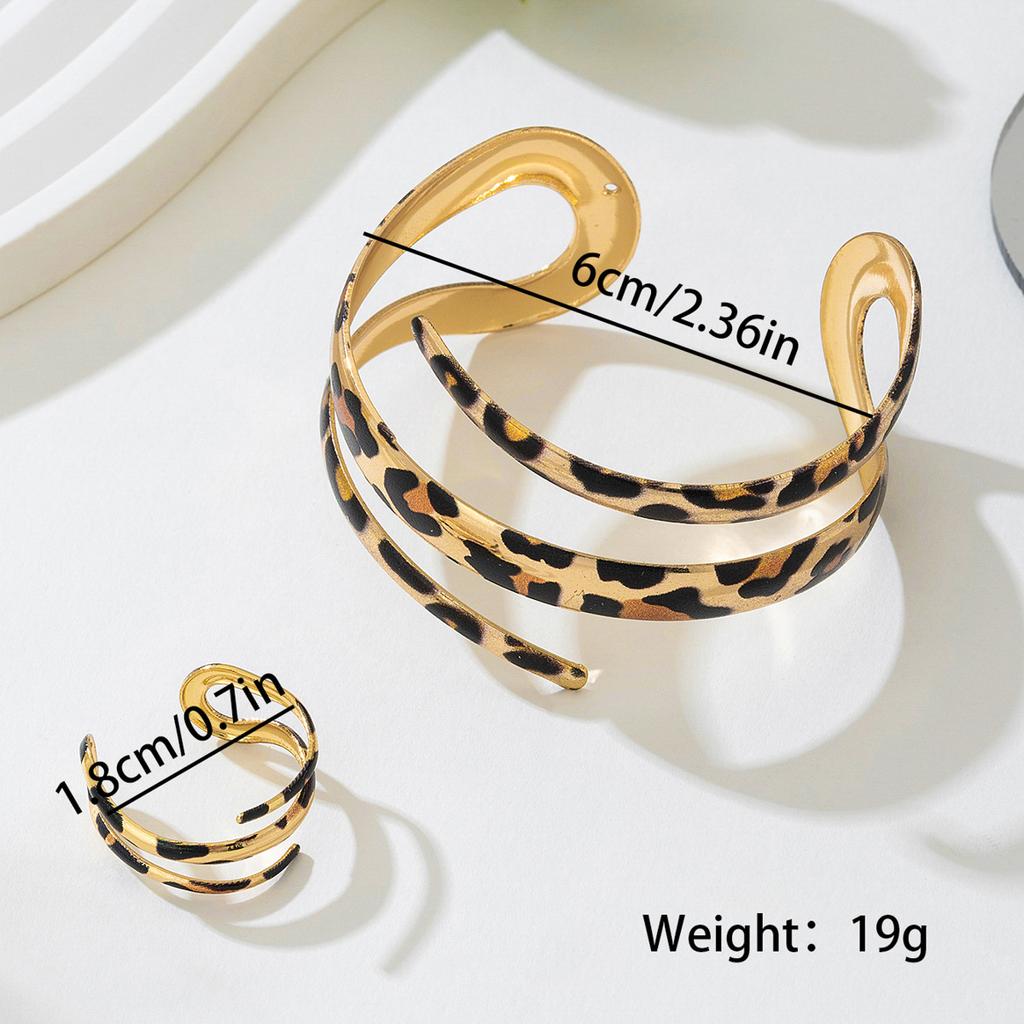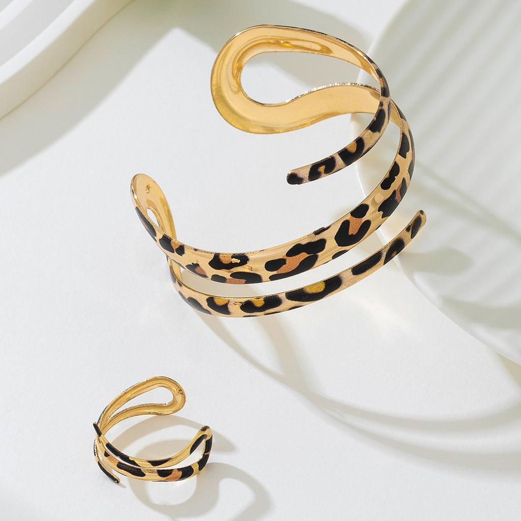 Европейская и американская мода личность пятнистый леопардовый принт полый трехслойный открытый женский браслет кольцо комплект ювелирных изделий