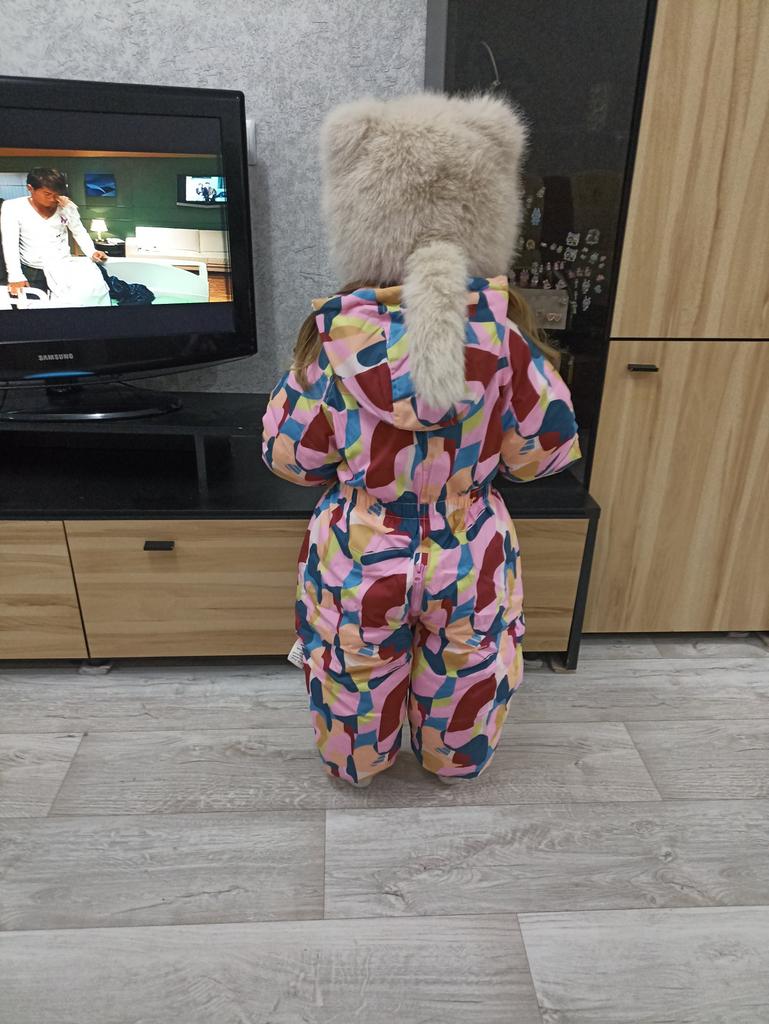 Отличный пуховик. Толстый. Наш рост 104, на фото видно что пуховик на рост 120 как раз