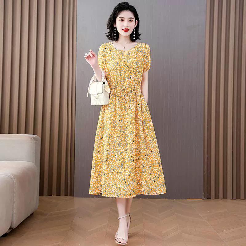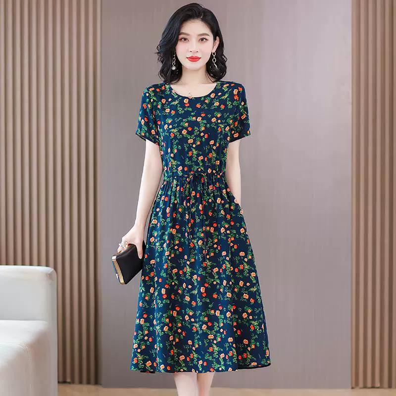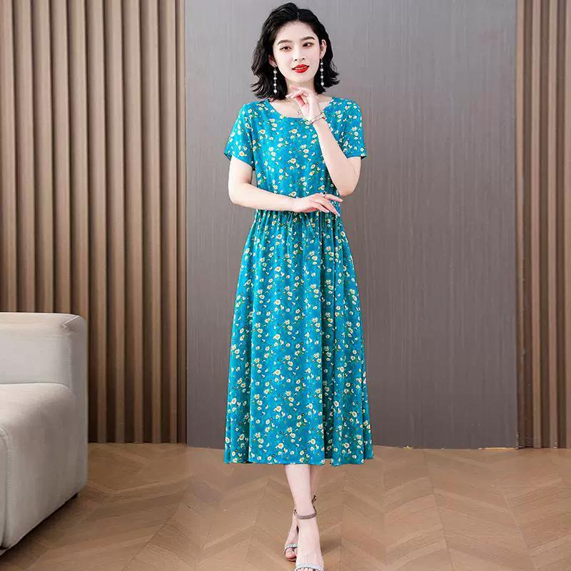 Платье Лето Молодая Мама Среднего Возраста Цветочная Длинная Юбка Темперамент Верхняя Одежда