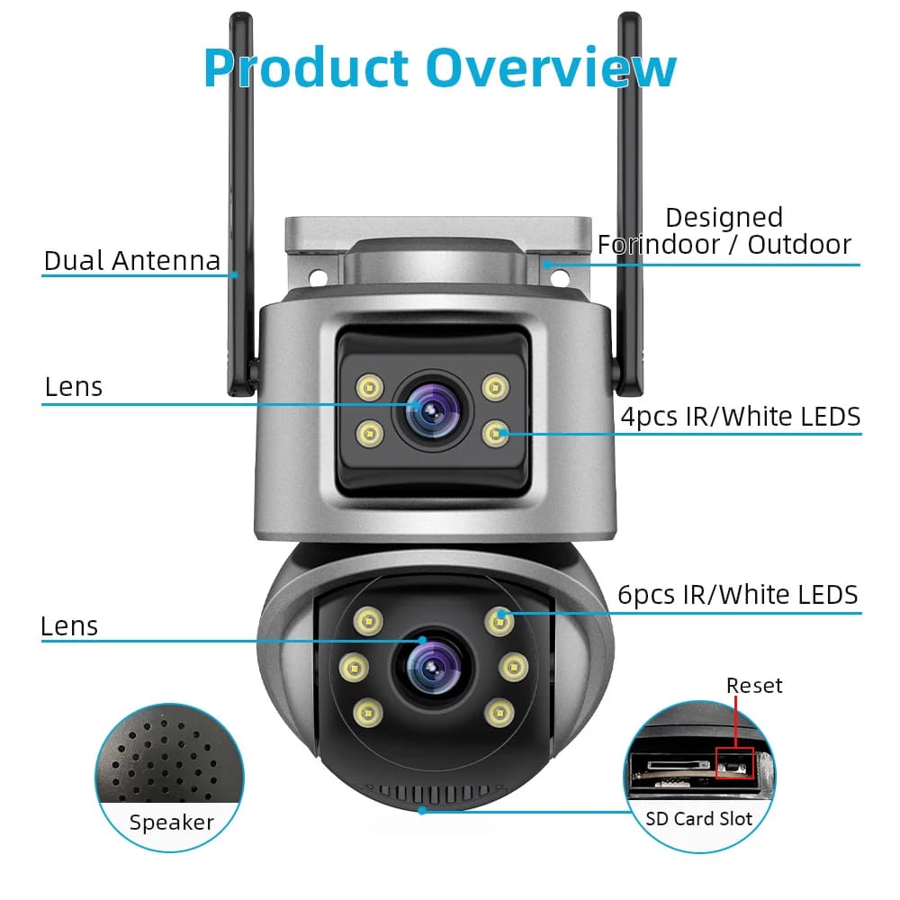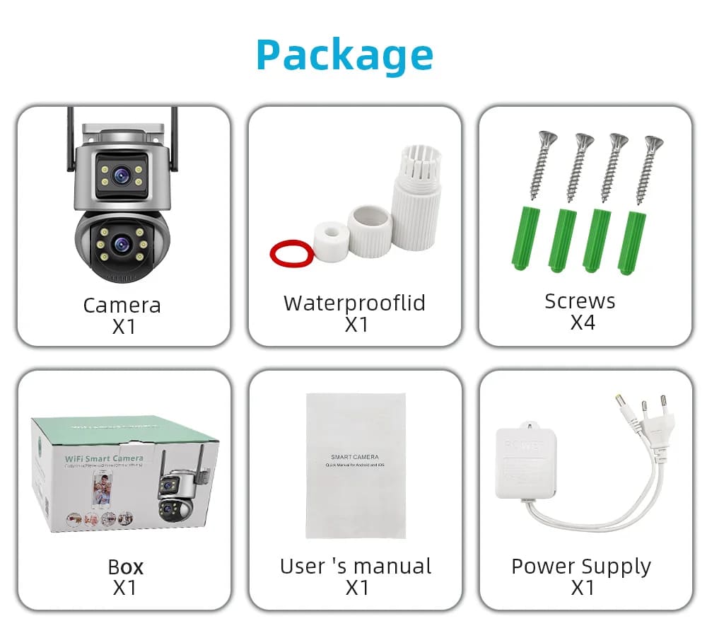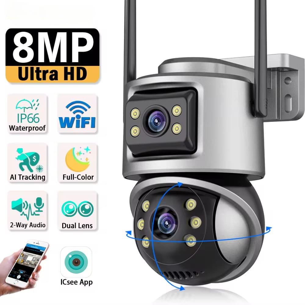 2. 8MP HD WIFI IP-камера, АБС-пластик, IP66 водонепроницаемый и пыленепроницаемый, подходит для внутреннего и наружного использования, надежная домашняя безопасность;
