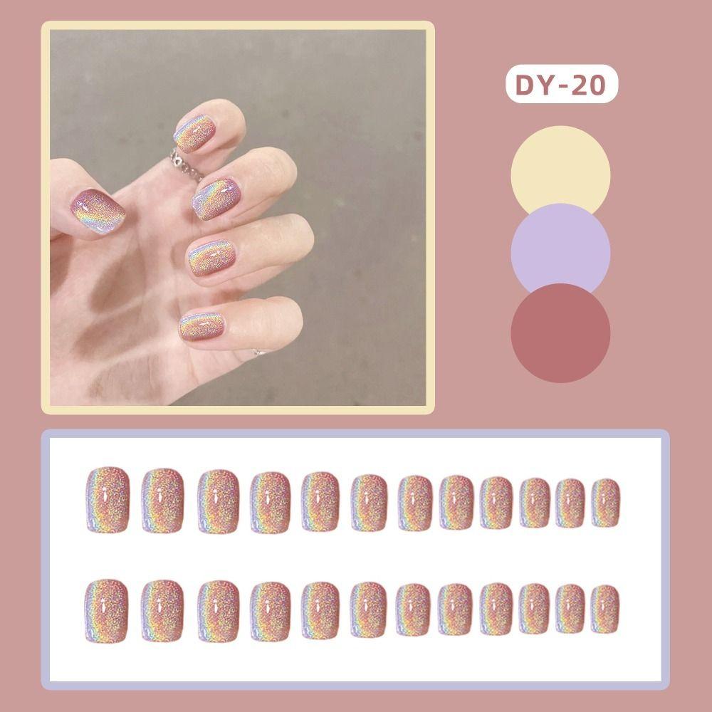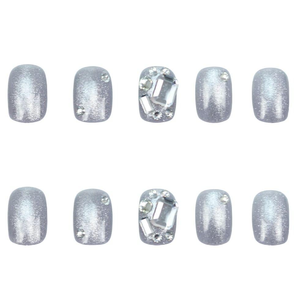 24 шт. Маникюрный пресс для ногтей Белый цветок DIY Французские короткие квадратные накладные ногти кошачий глаз