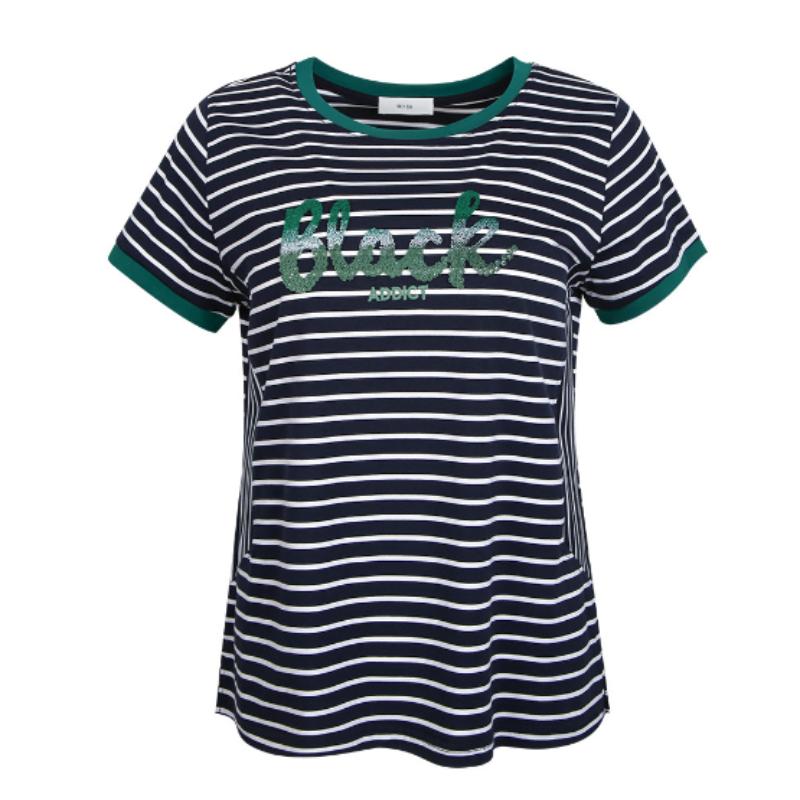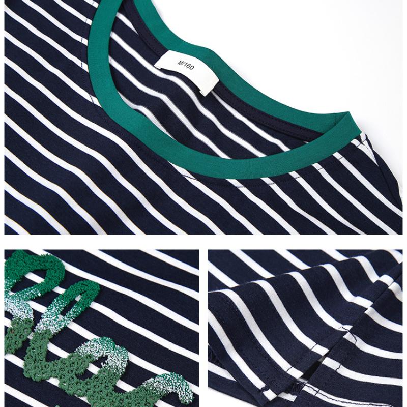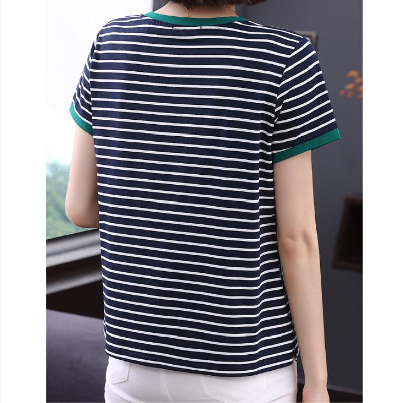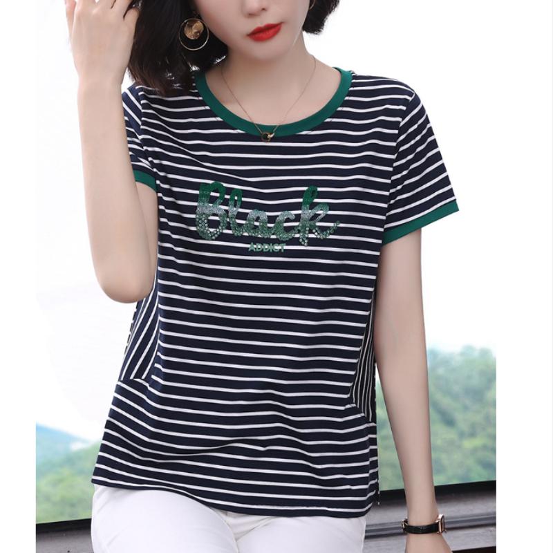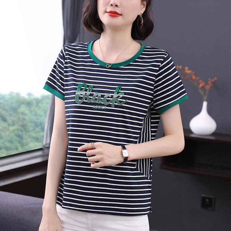 Модал полосатая женская футболка с короткими рукавами свободная летняя блузка с короткими рукавами для среднего возраста с вышитыми буквами тонкая с короткими рукавами