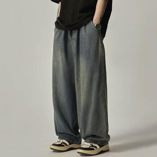 Мужские однотонные брюки большого размера с драпировкой и широкими штанинами из денима с эластичной резинкой на талии на весну и осень
