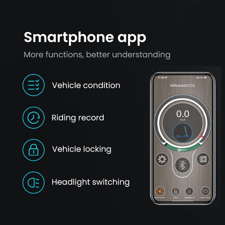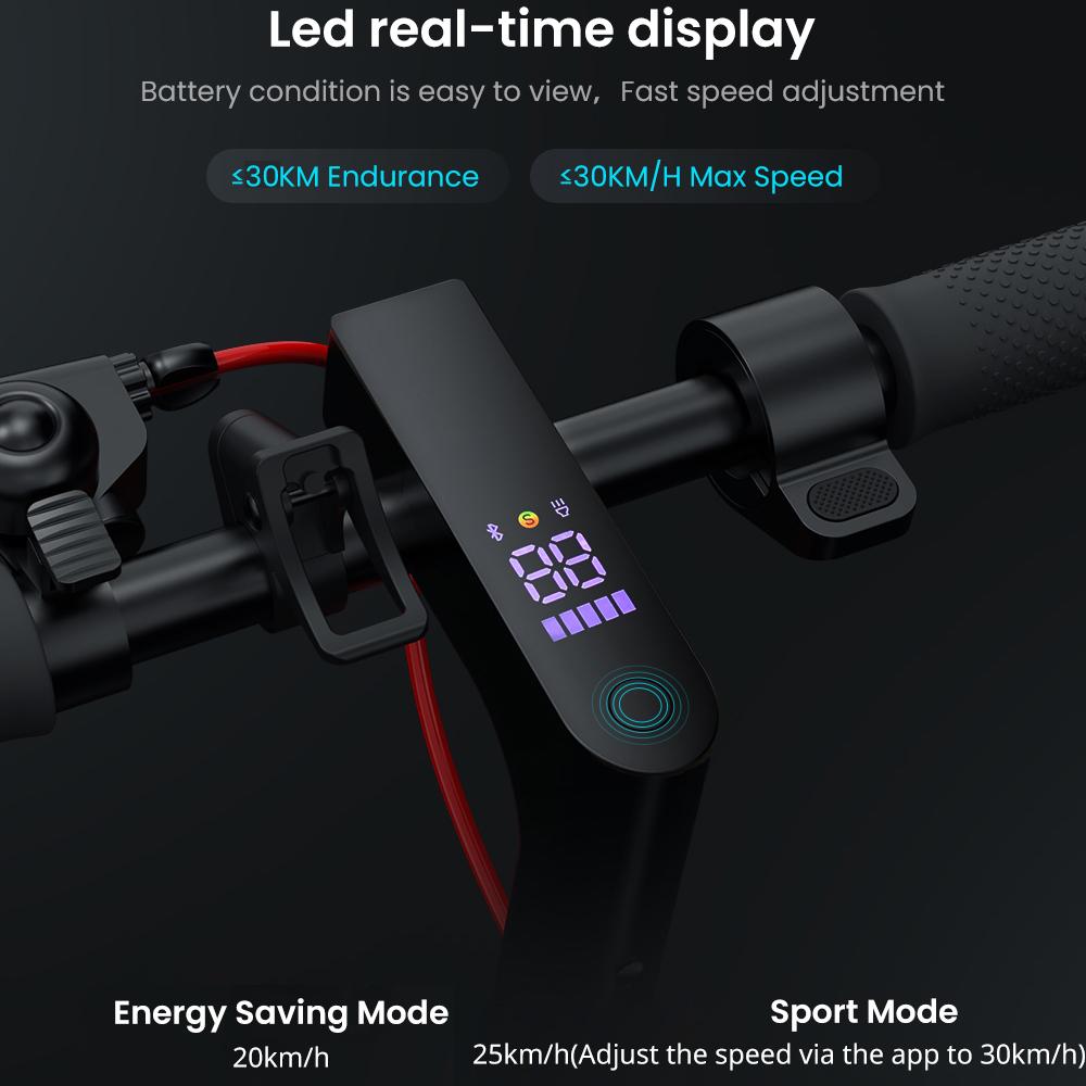 [УПРАВЛЕНИЕ Мобильным приложением] - Этот электрический скутер имеет систему Bluetooth, регулировку скорости, отслеживание пробега и времени, а также самопроверку электронного скутера.. Вы также можете свободно установить ограничение скорости (0 - 30 км/ч) через приложение.