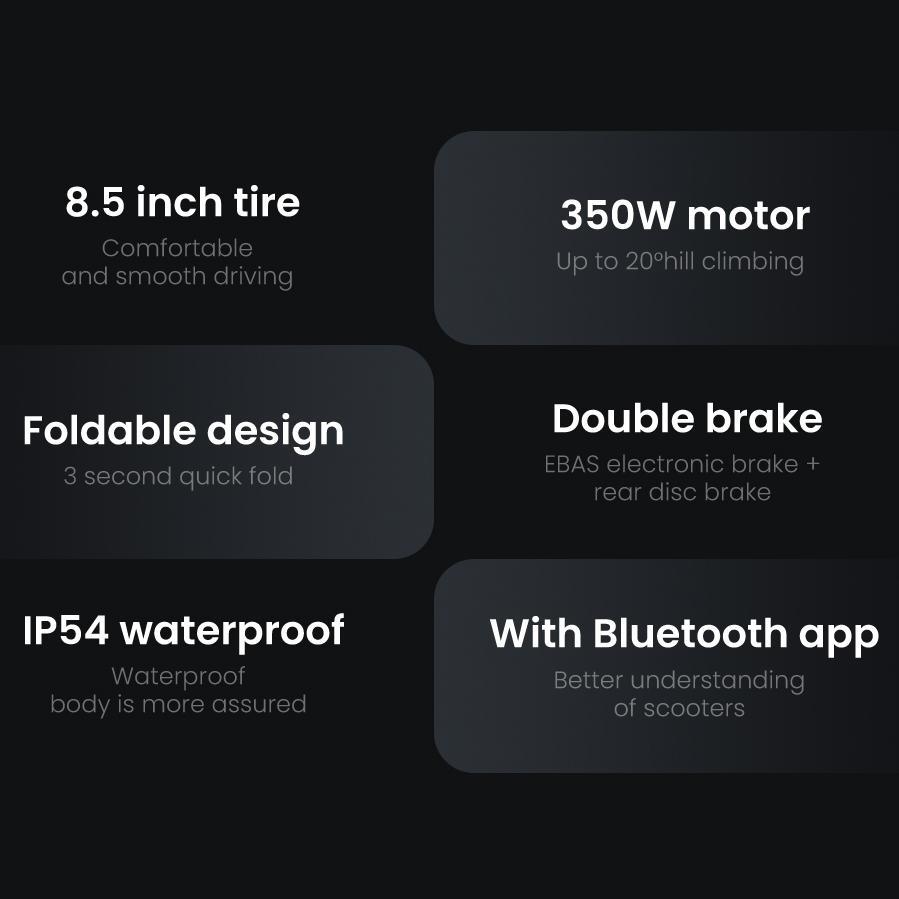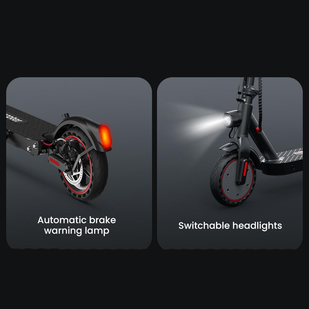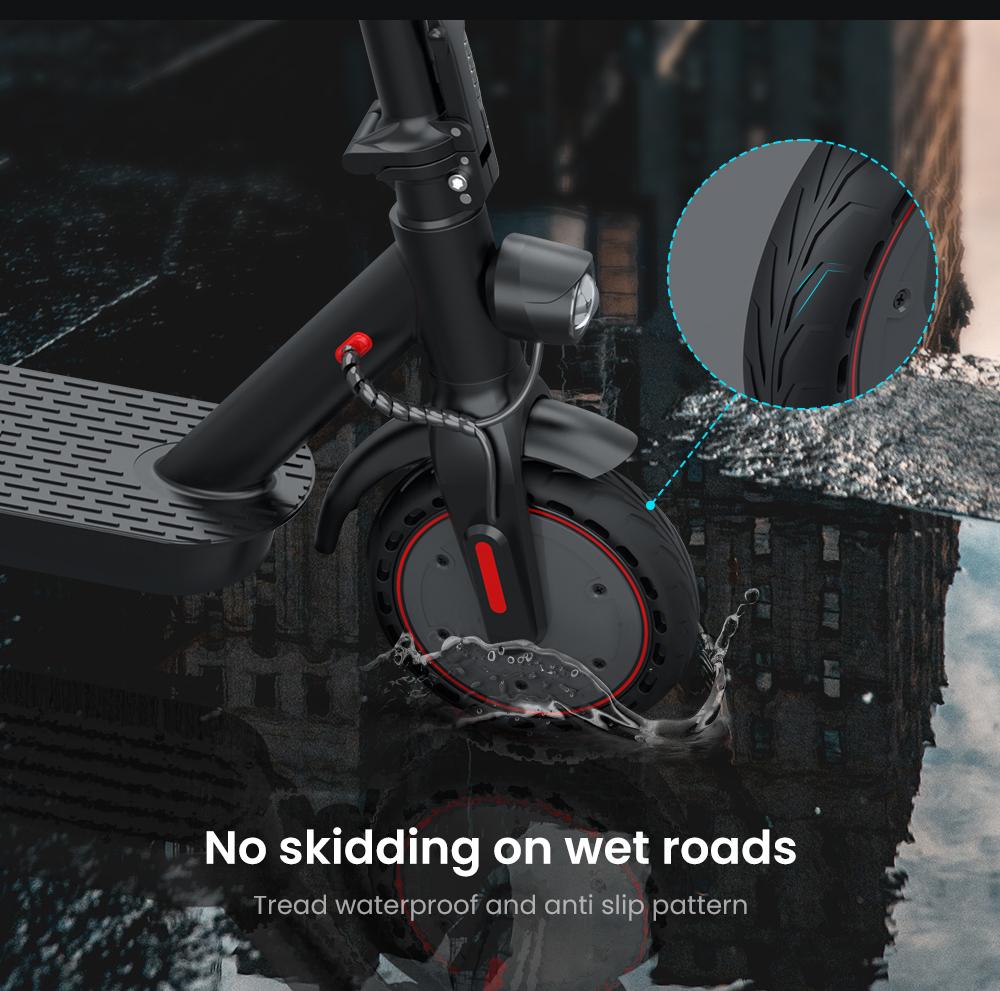 [Более безопасный электронный скутер для взрослых] - Множественная система подвески и конструкция сплошной шины с защитой от проколов делают скутер i9Pro более безопасным.. Две задние подвески значительно снижают усталость во время езды.. 8,5-дюймовые амортизирующие шины с сотовым заполнителем не требуют накачивания, ремонта или технического обслуживания.. Не беспокойтесь о проколах, цельнолитые шины обладают хорошим противоскользящим эффектом, высокой эластичностью и износостойкостью.