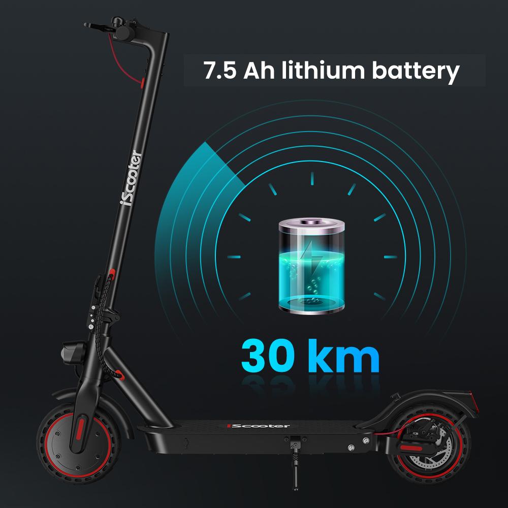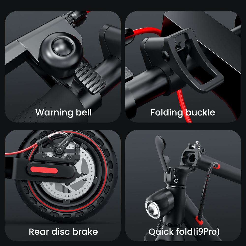 [Высокая производительность] - двигатель 350 Вт и литий-ионный аккумулятор емкостью 7,5 Ач. Максимальная скорость до 30 км/ч, а запас хода может достигать 30 км. . Самокат i9Pro поддерживает подъем под углом 15°.. сделать вашу поездку более эффективной.