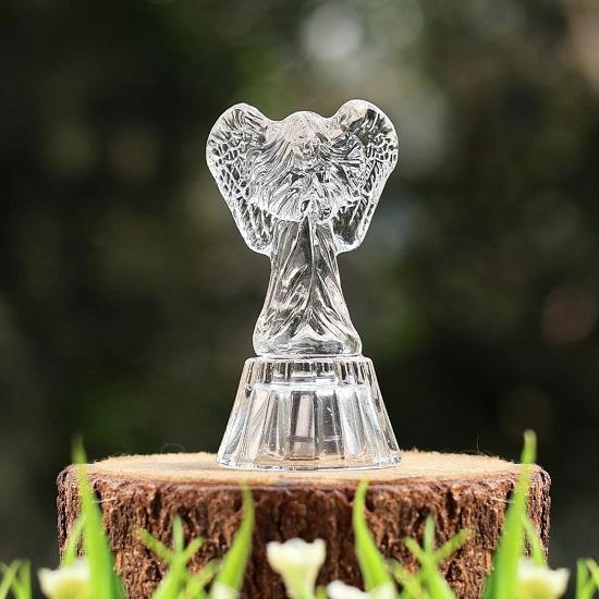 Стекло высшего качества: Этот стеклянный ангел-хранитель изготовлен из высококачественного, прочного стекла, что гарантирует его долговечную красоту.. Кристально чистая отделка придает изделию элегантный, изысканный вид, который дополнит интерьер любого дома или офиса.