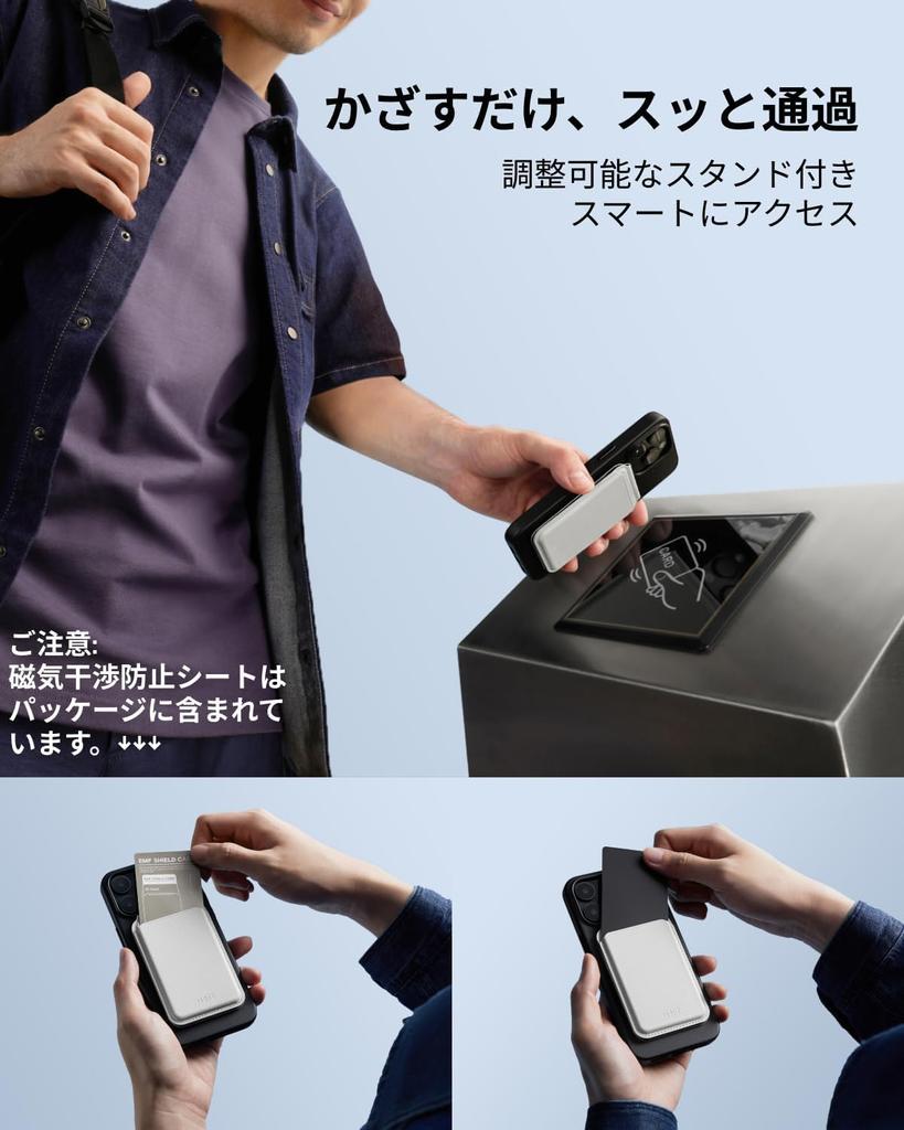 [Встроенная защита от помех/интеллектуальный доступ] Вы можете легко прикоснуться к нему в офисных зданиях или общественном транспорте, не доставая карту с поддержкой NFC. Удобный доступ: просто поднесите карту к считывателю. Вы можете избавить себя от необходимости искать свою карту в лифте, в магазине или на кассе на вокзале.. *Поскольку метод считывания отличается в зависимости от региона и типа карты, чувствительность при прикосновении к ИС будет немного отличаться.. [Совместимый с MagSafe чехол и подставка для карт] Встроенные 36 маленьких магнитов позволяют прикрепить его к совместимым с MagSafe смартфонам и чехлам для смартфонов.. В футляре для карт имеется окошечко для удостоверения личности, что позволяет удобно провести и показать удостоверение личности.. Применяет метод двойного открывания/закрывания, позволяющий «мигать» одновременно с помощью функции «Открыть-Показать-Закрыть»! [Бесступенчатая регулировка угла наклона/Более удобное использование] Вы можете отрегулировать угол наклона подставки по своему желанию. (Рекомендуется 45~60°), и поддерживает как вертикальный, так и «плавающий режим». Наслаждайтесь комфортом без помощи рук в любом месте. Ландшафтный режим идеально подходит для просмотра видео, а портретный режим — для видеозвонков.. Найди свой лучший ракурс. [Всегда красивы и просты в уходе] "MOVAS" Viga