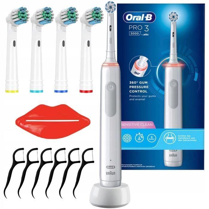 Brosse à dents électrique - Oral B - Pro 3 3000 Sensitive Clean - Blanche - 4 brossettes Precision