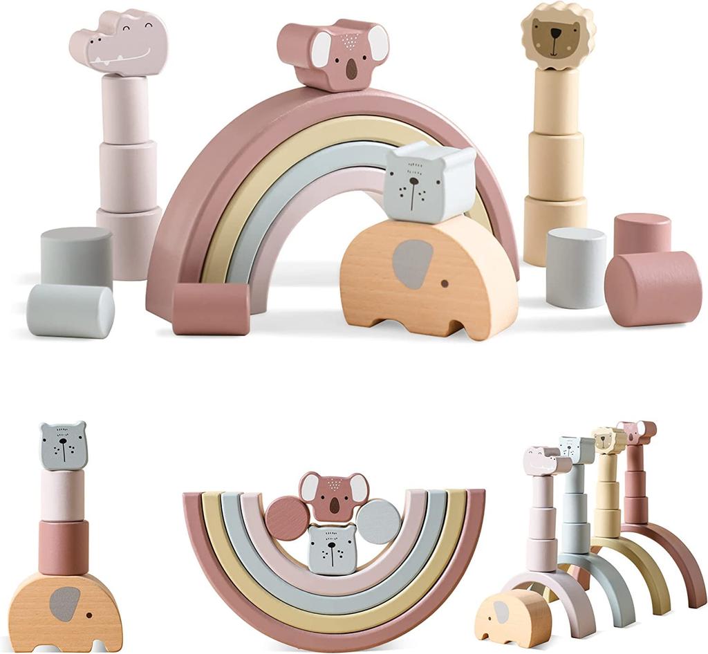 [Идеально подходит в качестве подарка] Богатый набор включает в себя: 4 радуги в форме арок, 5 блоков в форме животных и 12 маленьких цилиндрических блоков. Для пожилых людей этот игровой набор подойдет обоим родителям, чтобы они могли играть вместе со своими детьми, проводя время с внуками.. Это подарок на день рождения №1 в рейтинге развивающих игрушек для девочек и мальчиков! Рекомендуется в качестве подарка, на рождение ребенка, поступление в детский сад, на День защиты детей, Рождество или любое другое особое событие.