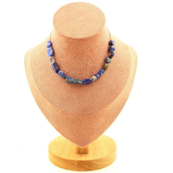 Pierres et Minéraux. Collier 15 perles Lapis Lazuli du Pakistan. Chaine en acier inoxydable Collier femmes, hommes. Taille personna