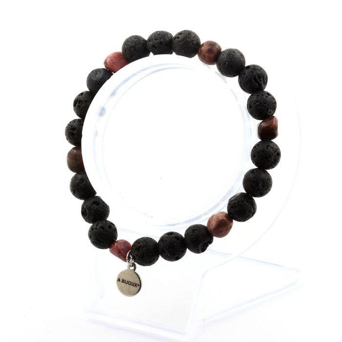 Камни и минералы. Браслет Родохрозит из Бразилии + Лавовые бусины 8 мм. Сделано во Франции.