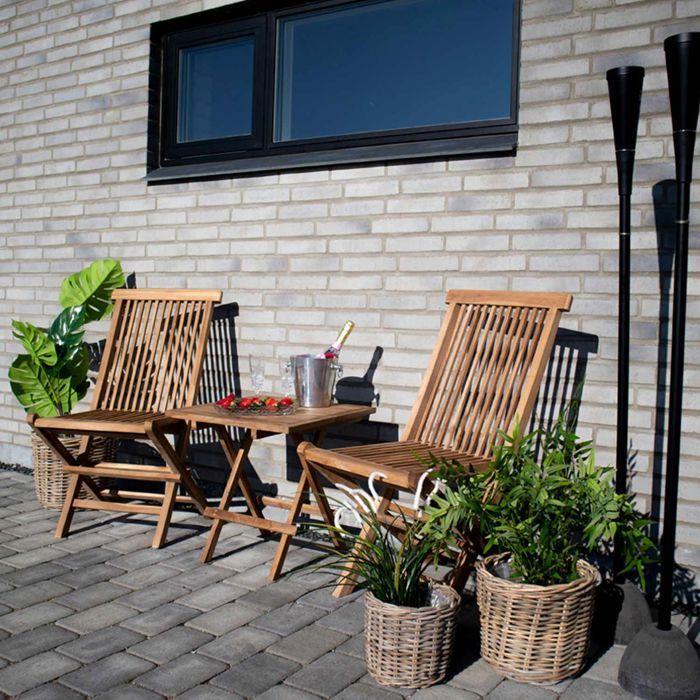 Table de jardin carrée 50 cm + 2 chaises en teck