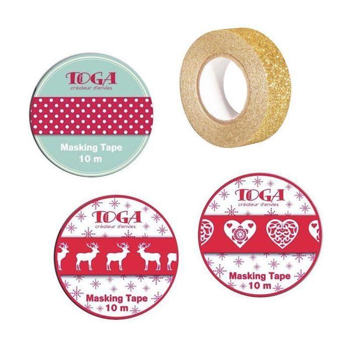 4 masking tapes de Noël - rouge, blanc, doré à paillettes