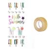 12 stickers 3D Elephants 4,3 cm + masking tape doré à paillettes 5 m