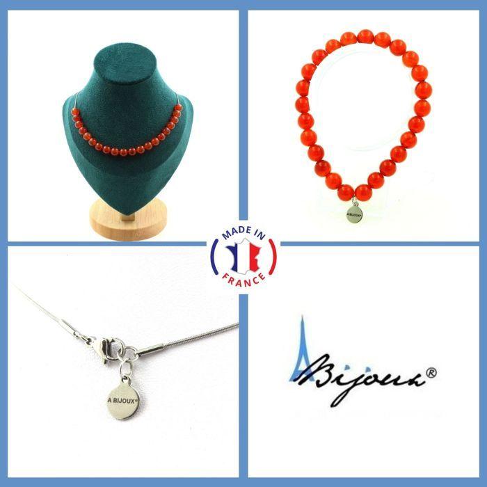 Pierres et Minéraux. Parure bijoux Bracelet Collier 20 Perles Cornaline d'Uruguay qualité Taille personnalisable.
