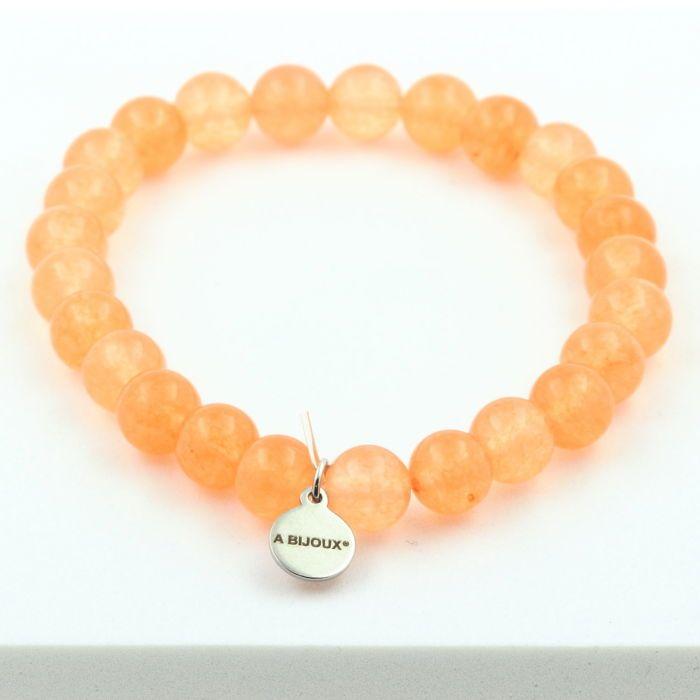 Pierres et Minéraux. Bracelet Perles Calcédoine orange 8 mm. Fabriqué en France. Taille personnalisable.