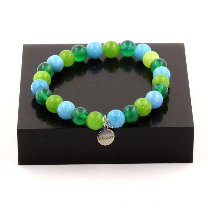 Pierres et Minéraux. Bracelet Perles Agate verte + Calcédoine bleu + Péridot 8 mm. Fabriqué en France.