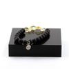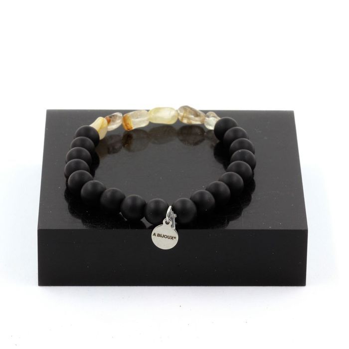 Pierres et Minéraux. Bracelet Quartz à Rutile doré du Brésil + Perles Onyx noir mat 8 mm. Fabriqué en France.