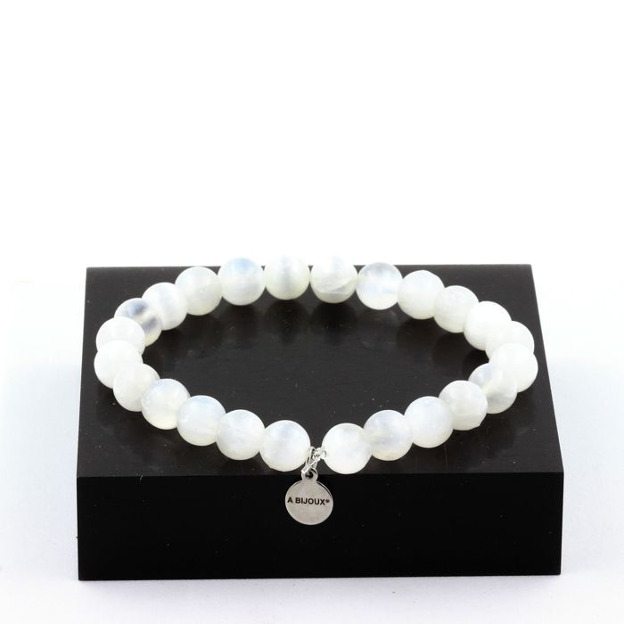 Pierres et Minéraux. Bracelet Perles Selenite du Maroc 8 mm. Qualité 5A. Fabriqué en France.