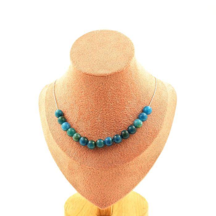Pierres et Minéraux. Collier 15 perles Apatite 8 mm. Chaine en acier inoxydable Collier femmes, hommes. Taille personnalisable.