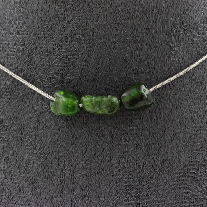 Pierres et Minéraux. Collier 3 perles Diopside du Brésil. Chaine en acier inoxydable Collier femmes, hommes. Taille personnalisable.