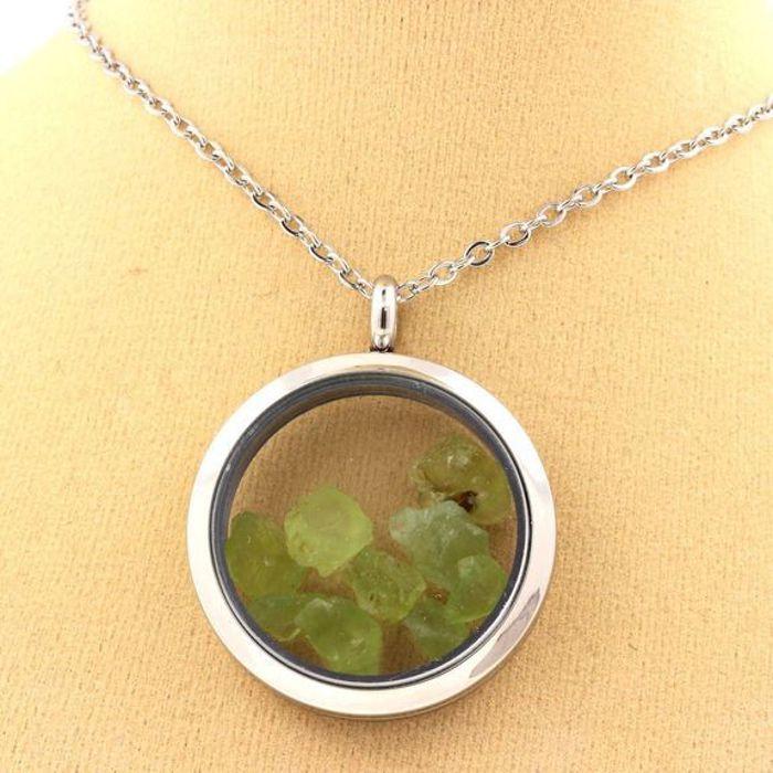 Pierres et Minéraux. Collier Péridot brut. Modèle Médaillon 30 mm. Couleur Argent. — купить товар онлайн с бесплатной доставкой по всему миру!