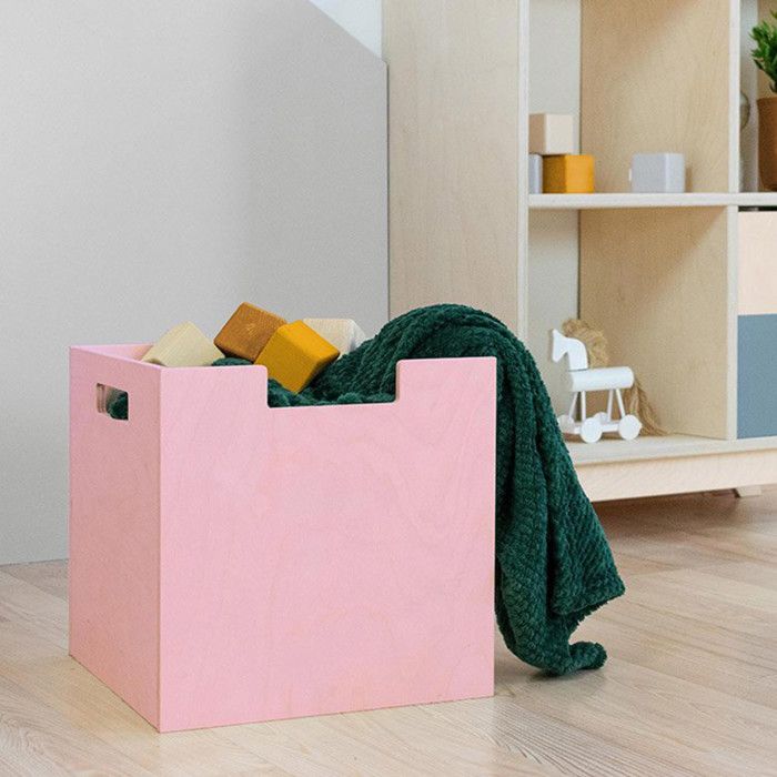 Boîte de rangement bois modèle 2 - poignées - Rose - 33 x 33 x 37 cm