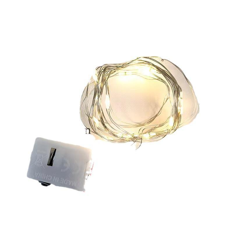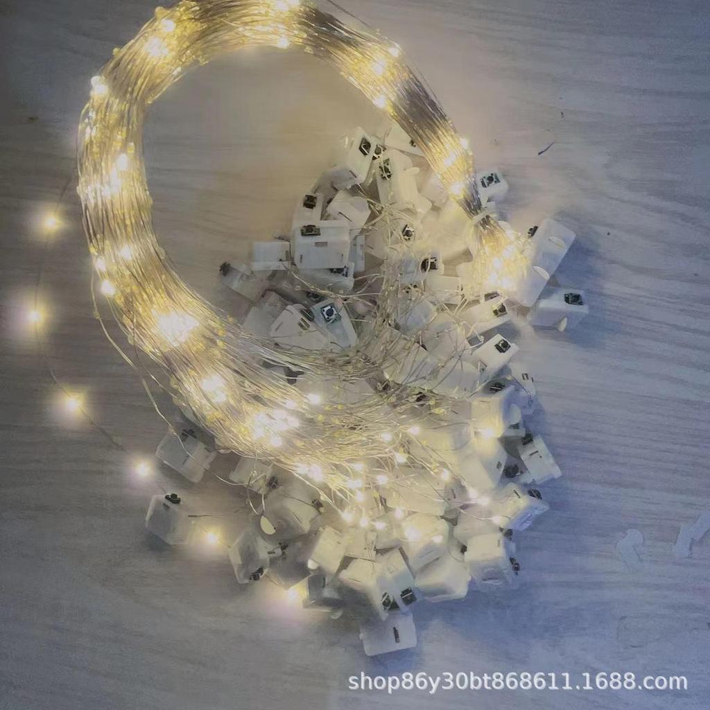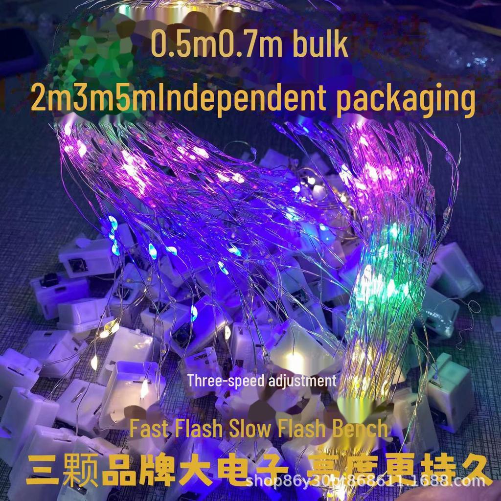 Светодиодные рождественские огни: Гирлянда из медной проволоки с разноцветными светодиодами в форме звезд и батарейным отсеком для праздничного украшения.