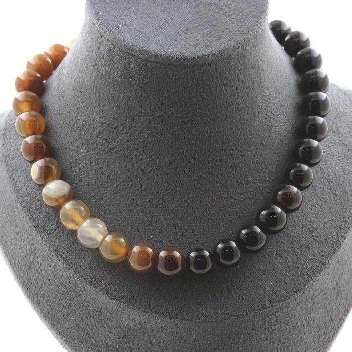 Pierres et Minéraux. Collier perles Angélite 10 mm + Agate noire 10 mm. Chaine en acier Collier femmes, hommes. Taille personnalisa