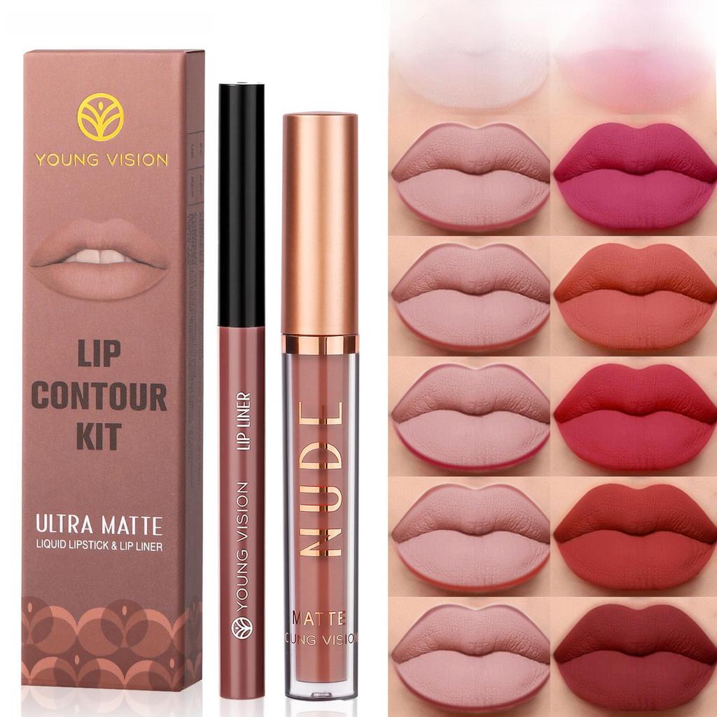 YOUNG VISION Комплект из 2 предметов: Матовый блеск для губ и вращающийся карандаш для губ, не оставляет пятен — купить товар онлайн с бесплатной доставкой по всему миру!