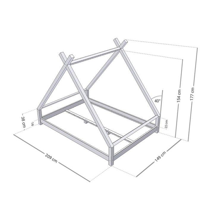 Lit Tipi enfant bois massif blanc 140 x 200 cm