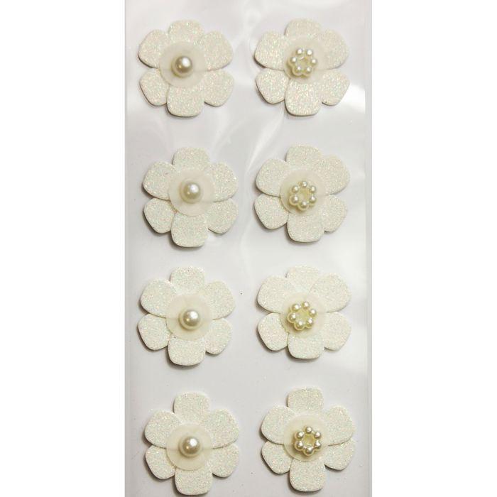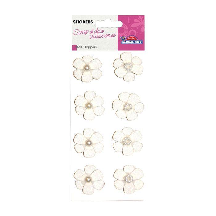 8 Autocollants 3D - Fleurs blanches - Mariage
