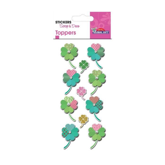 Autocollants 3D - Topper - Trèfles à 4 feuilles - Paillettes - Mixte - 15 x 7 cm