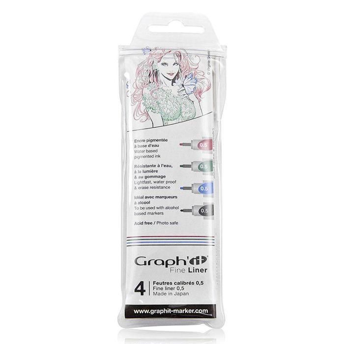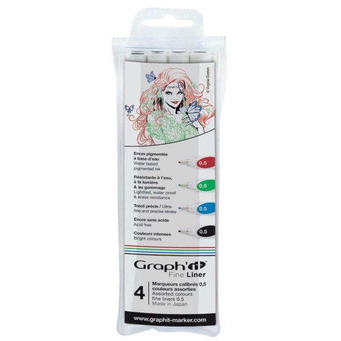 Pochette de 4 Fine Liners - Graph'It - 0.5 mm - Encre pigmentée - Noir, Bleu, Vert, Rouge