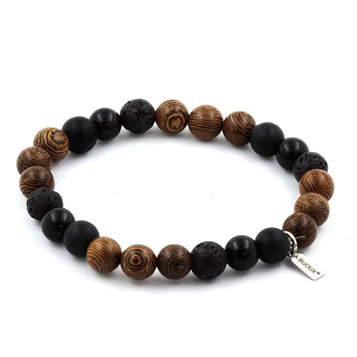 Bracelet - A Bijoux - Obsidienne noire et Onyx - 8 mm - Longueur 19-20 cm - Fabriqué en France
