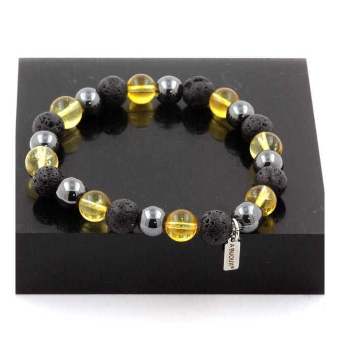 Pierres et Minéraux. Bracelet Perles Hématite + Citrine + Lave 8 mm. Fabriqué en France. — купить товар онлайн с бесплатной доставкой по всему миру!