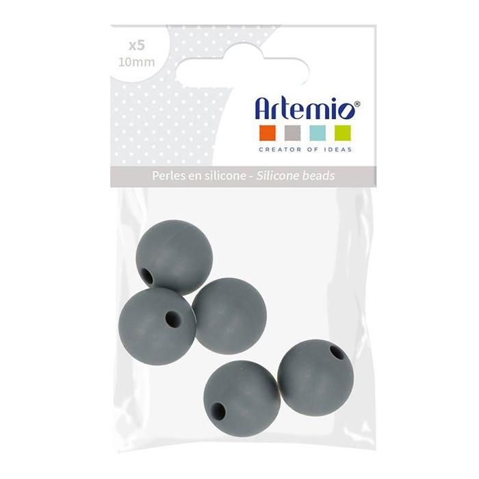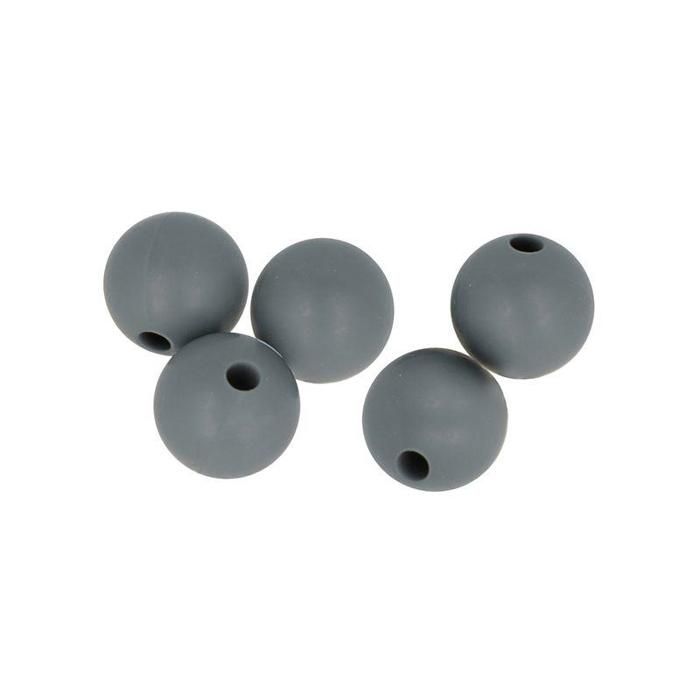 Lot de perles rondes en silicone - 10 mm - Gris - 5 pcs