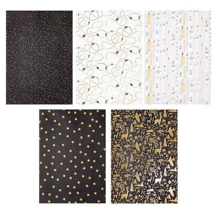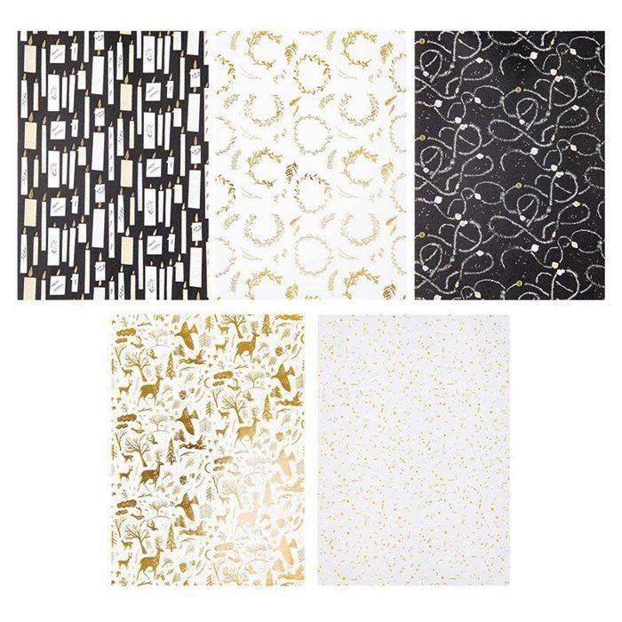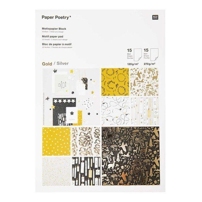 Декорированная бумага А4 - Rico Design - Ностальгическое Рождество - Черный/Золотой - 30 листов - 120/270 г/м²