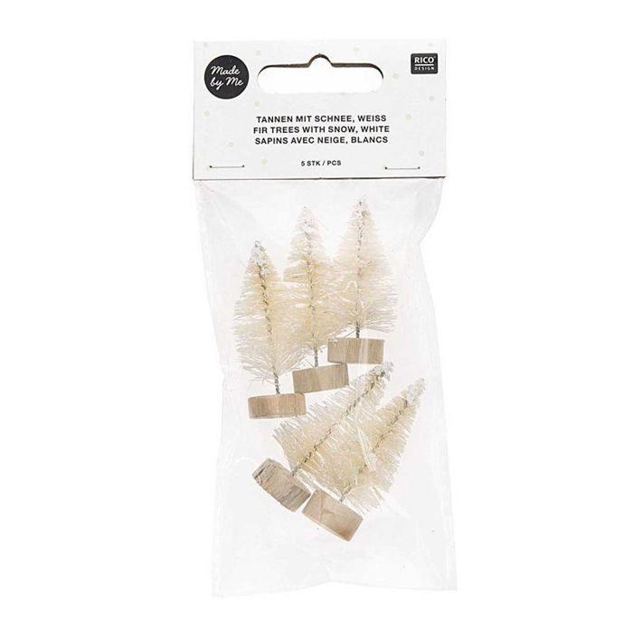 Набор из 5 белых деревянных рождественских елок 5 см