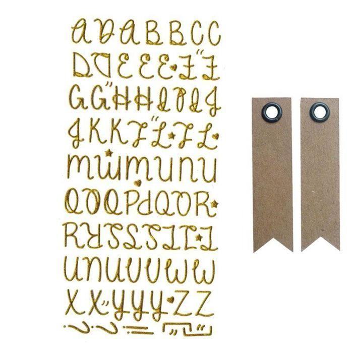Stickers alphabet doré à paillettes + 20 étiquettes kraft Fanion