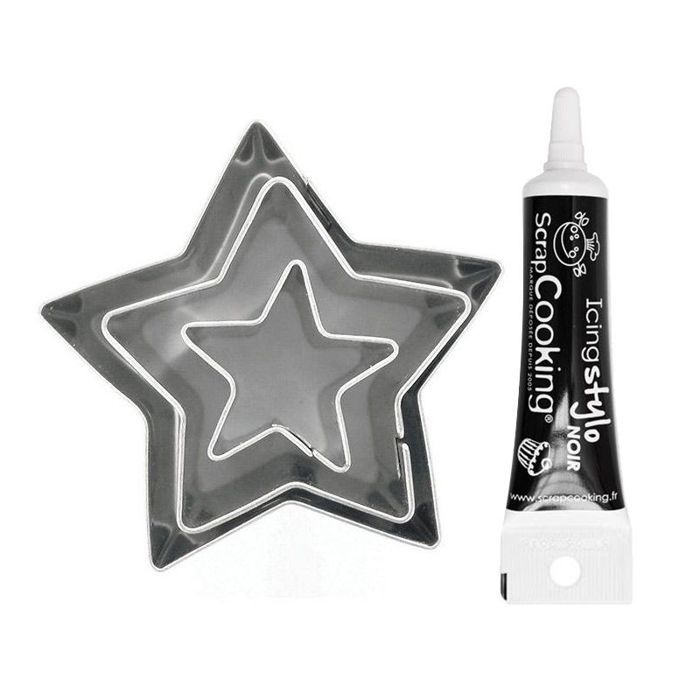 3 mini emporte-pièces inox Etoiles + Stylo de glaçage noir