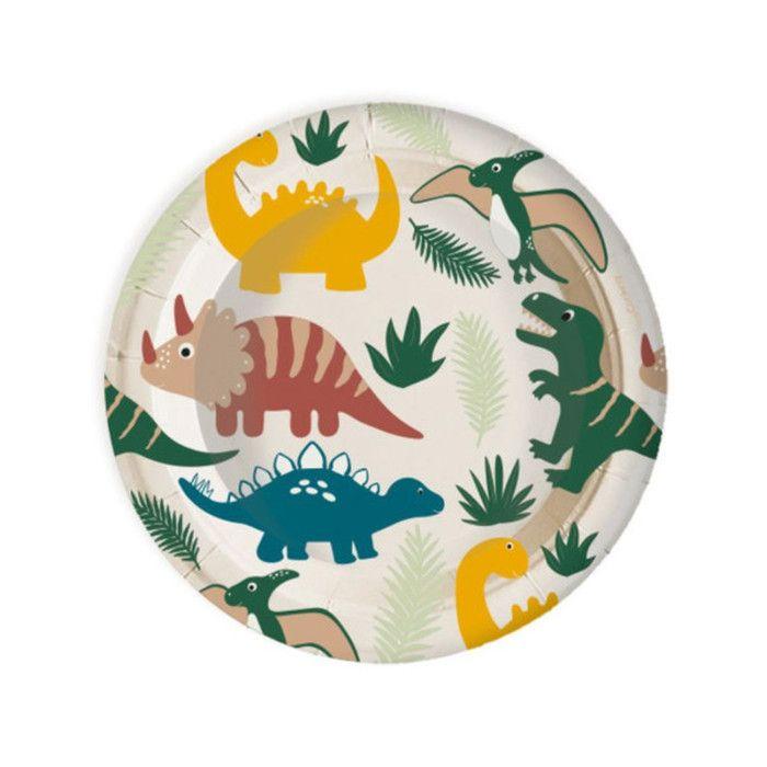 Assiettes en carton - Dino - 23 cm - 8 pcs - Contact alimentaire - Idéal pour événements