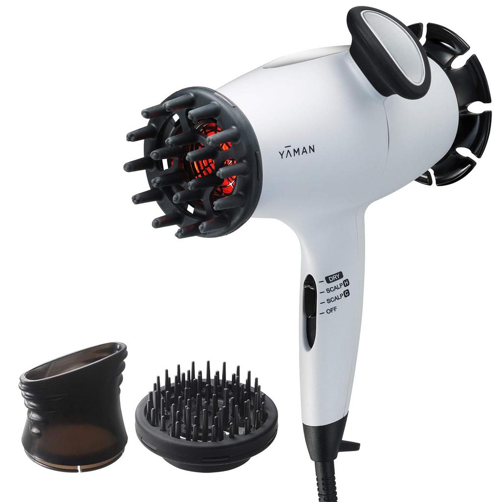 YA-MAN Scalp Dryer Pro / HC-9W / Размер: приблизительно. Ш112 x Г194 x В297 мм (только основной блок) / Масса: приблизительно. 650г (включая основной блок и шнур питания) / Установить содержимое: основной блок, скальповая головка (большой), набор насадок, кисть для блеска, инструкция по эксплуатации (гарантия включена) / AC100V 50/60Hz, потребляемая мощность: приблизительно. 930 Вт (во время СУХОЙ операции), температура горячего воздуха: приблизительно. 60 °С (10см от розетки) во время СУХОЙ работы, приблизительно. 42°С (3см от розетки) во время работы SCALP H [температура окружающей среды 25℃], объем воздуха: приблизительно. 1,0 (м3/мин) / страна-производитель: Китай