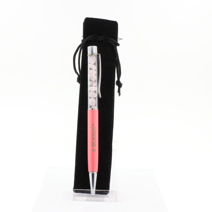 Pierres et Minéraux. Stylo minéraux Quartz rose du Brésil. Couleur Rose Saumon.