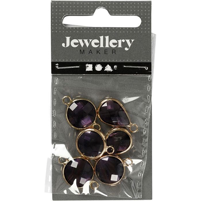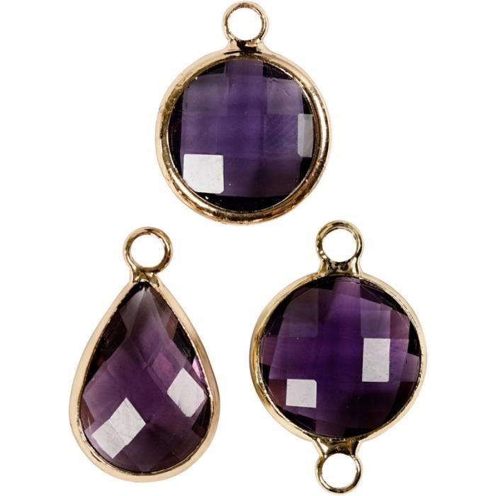 Pendentif - Violet - Assortiment de 6 pcs - Cabochon en verre - Métal - Mixte