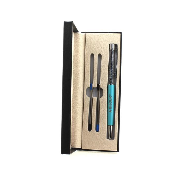 Pierres et Minéraux. Stylo minéraux Saphir brut Madagascar. Couleur Bleu turquoise.