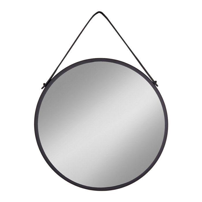 Трапани Зеркало с кожаной подвесной лентой, черное.
