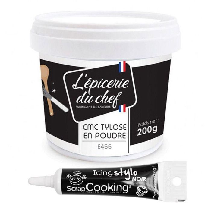Colle alimentaire en poudre CMC 200 g + Stylo de glaçage noir